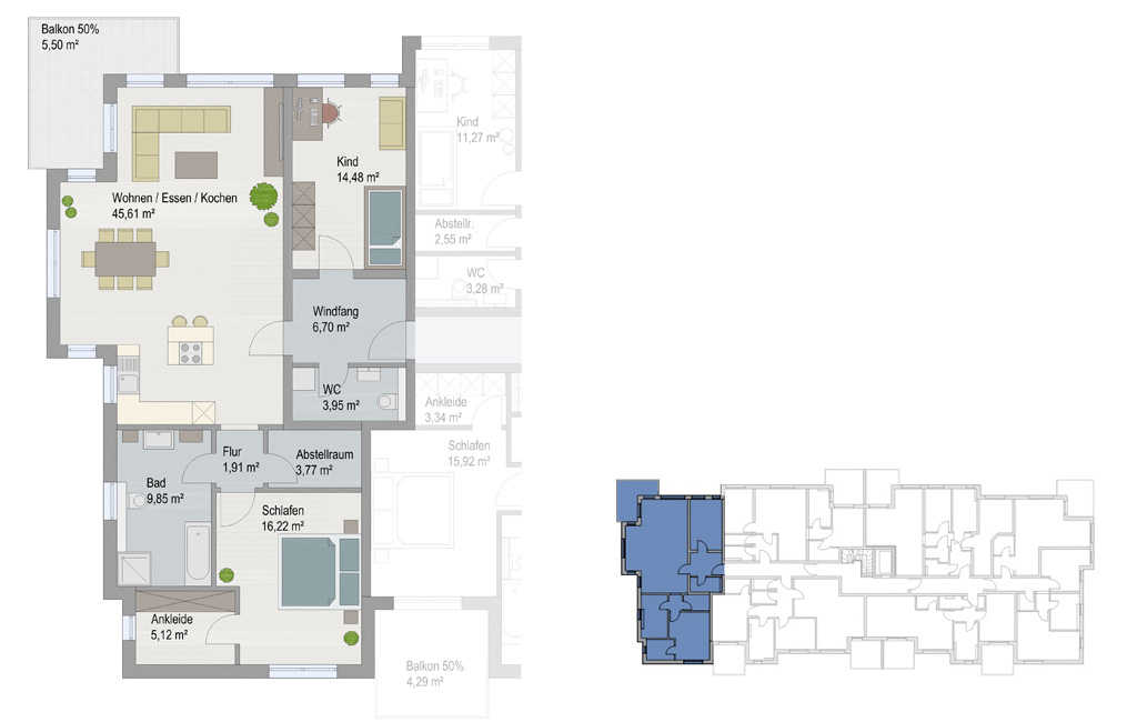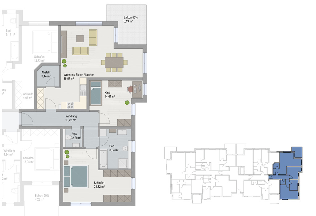 - Waschmaschinenanschlüsse in jeder Wohnung